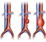 במפרצת בטנית, אאורטה, מקטע של אבי העורקים מתנפח באזו...